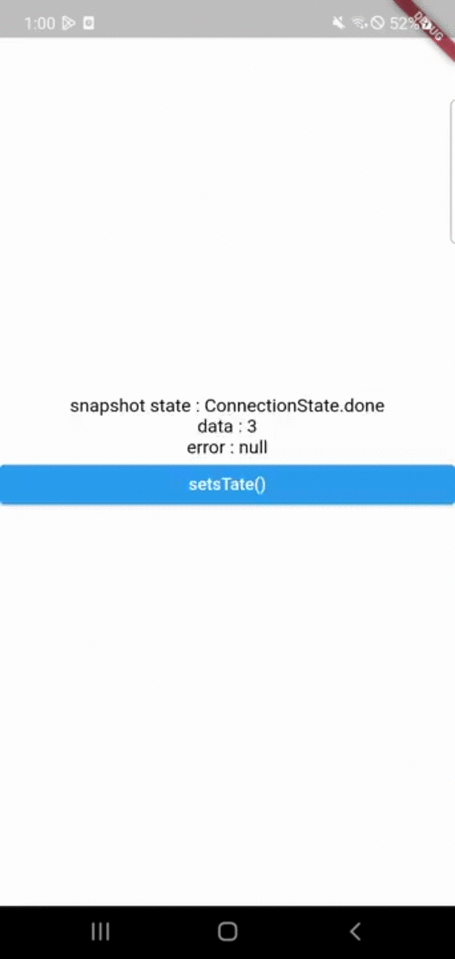 print("connectionState : ${snapshot.connectionState} data : ${snapshot.data}");