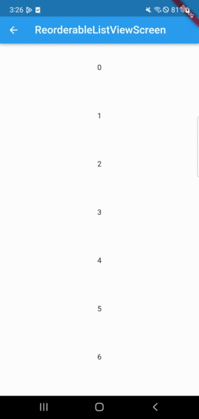 리스트 뷰의 항목의 순서를 사용자가 바꿀 수 있는 위젯으로 긴 터치(Long touch)를 한 상태에서 드래그를 하면 위젯이 따라온다. 원하는 위치에 터치 상태에서 손을 떼면 그 위치로 위젯의 순서가 바뀐다.