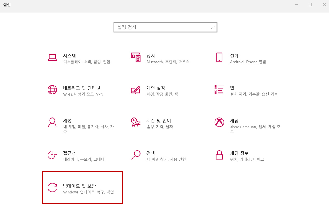 ① [설정] → [업데이트 및 보안] 탭에 들어간다.