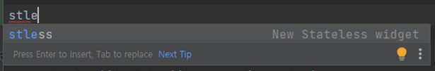 안드로이드 스튜디오에서 몇 글자만 써도 자동으로 메뉴를 보여주는 기능이 있다. Flutter 프로젝트에서 "stless" 단어를 치면 나오는 것과 같은 기능이다. 내가 원하는 형식으로 이 기능을 사용할 수 있다.