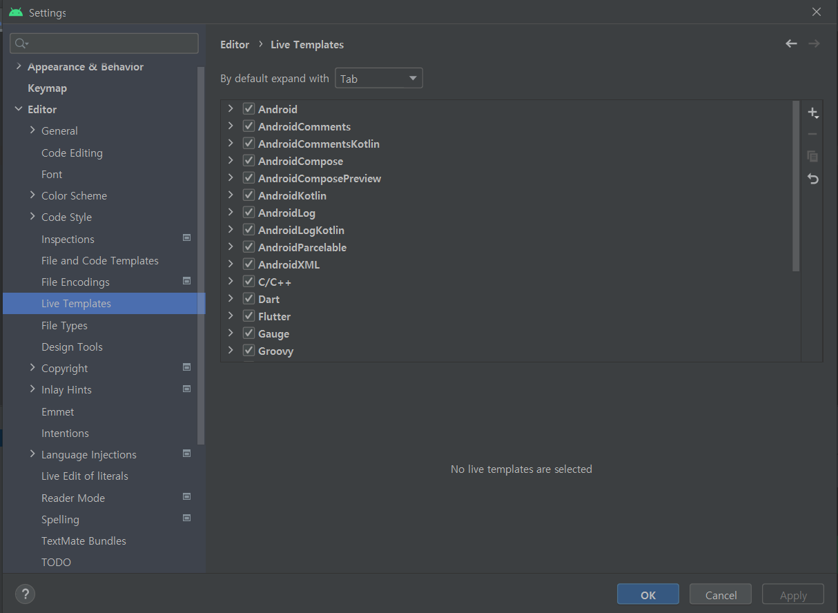 [AndroidStudio] 자동 완성 설정하기 (Live Templates) 본문
