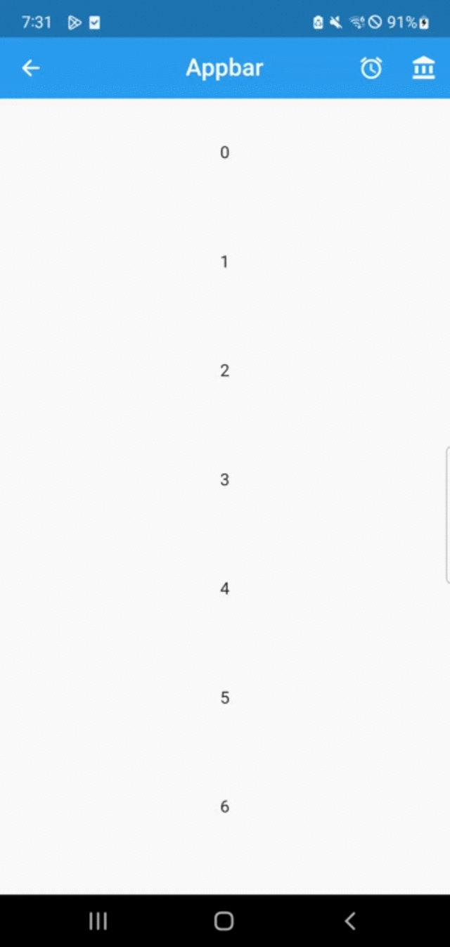 플러터에서 앱바 기능을 해주는 위젯은 Appbar() 위젯이다. Scaffold() 의 appbar 인자로 사용할 수 있다. flutter api 공식 문서에 나와있는 것을 참고하면 앱바의 주요 부분들을 leading, title, actions ... 으로 불린다.