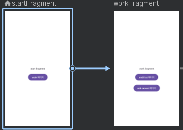 예시에서는 startFragment > workFragment 로 이동한다. 여기서 ">" 이동한다는 표시를 <fragment> 태그에 <action> 태그를 이용하여 나타낼 수 있다.