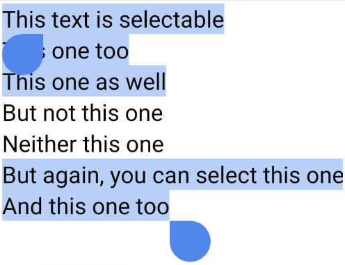 선택 가능한 영역의 특정 부분만 선택 불가능하게 해야한다면 그 부분만 DisableSelection 컴포저블로 래핑한다.