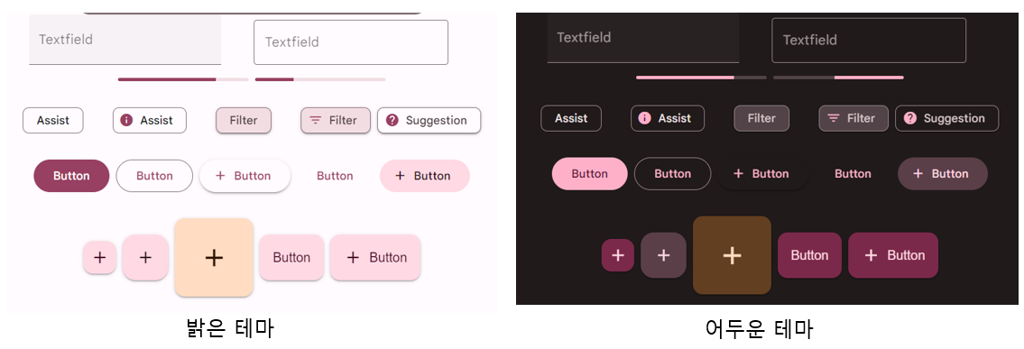 설정한 핵심 색상들에 따라 컴포저블의 색상들이 달라진다.